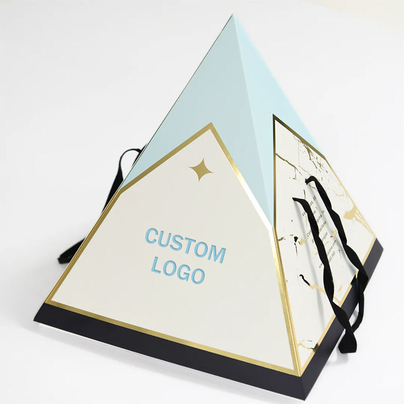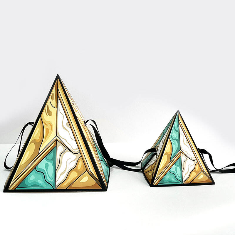 Custom Pyramid Shaped Chocolate Cookies Packaging Box with Handle Bespoke Paper Packaging for Picnic