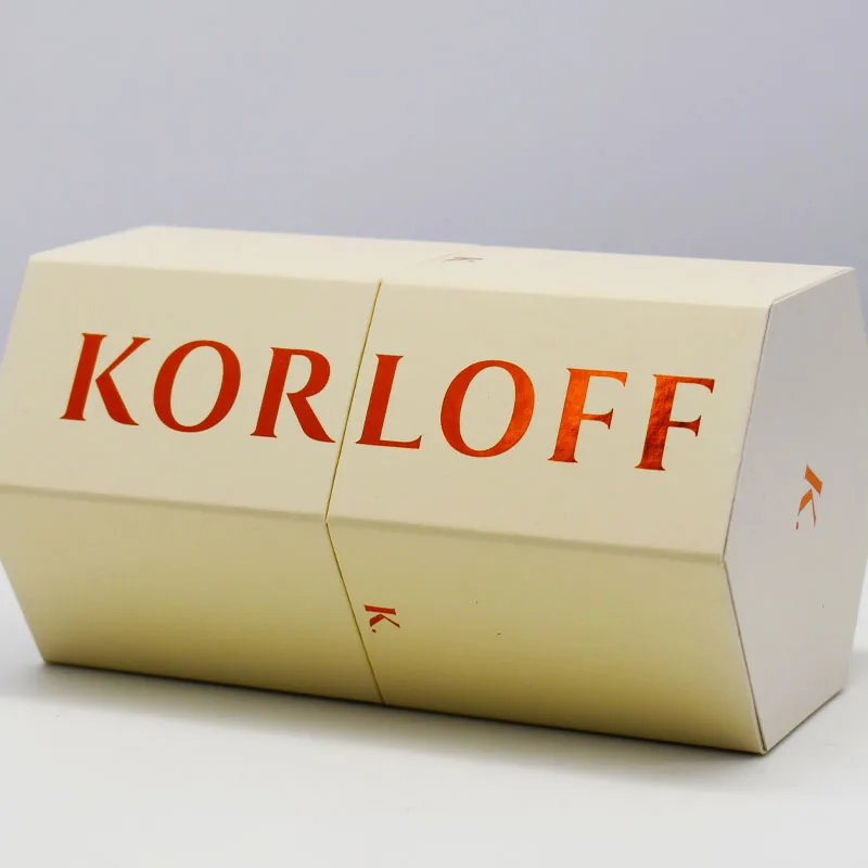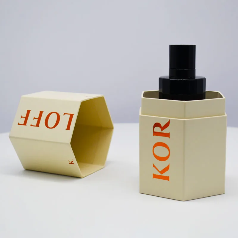 Cream Color Hexogonal Multi Faces Style Sample Cosmetic Glass Jar Perfume Bottle Paper Packaging Carton Paper Box with Foil Hot